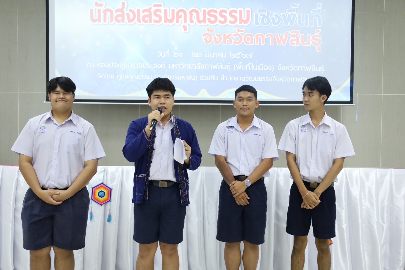 การอบรมพัฒนาศักยภาพ “นักส่งเสริมคุณธรรมเชิงพื้นที่ จังหวัดกาฬสินธุ์” จัดขึ้นเพื่อพัฒนาศักยภาพแกนนำหน่วยงานภาคีเครือข่ายทางสังคมในพื้นที่จังหวัดคุณธรรมให้มีความรู้ความเข้าใจกระบวนการและเครื่องมือการส่งเสริมคุณธรรมให้สามารถนำความรู้ไปประยุกต์ใช้และขยายผลการดำเนินกิจกรรมในองค์กรให้มีประสิทธิภาพ เพื่อให้เกิดการเชื่อมโยง บูรณาการการทำงานด้านการส่งเสริมคุณธรรมร่วมกันในระดับองค์กร พื้นที่ และสนับสนุนการขับเคลื่อนจังหวัดคุณธรรม ควบคู่กับการส่งเสริม สนับสนุนการแปลงนโยบายด้านการส่งเสริมคุณธรรมในระดับจังหวัด ภูมิภาคและระดับชาติ ตามแนวทางแผนปฏิบัติการด้านการส่งเสริมคุณธรรมแห่งชาติ ระยะที่ 2 (พ.ศ. 2566 - 2570) สู่การปฏิบัติอย่างเป็นรูปธรรม