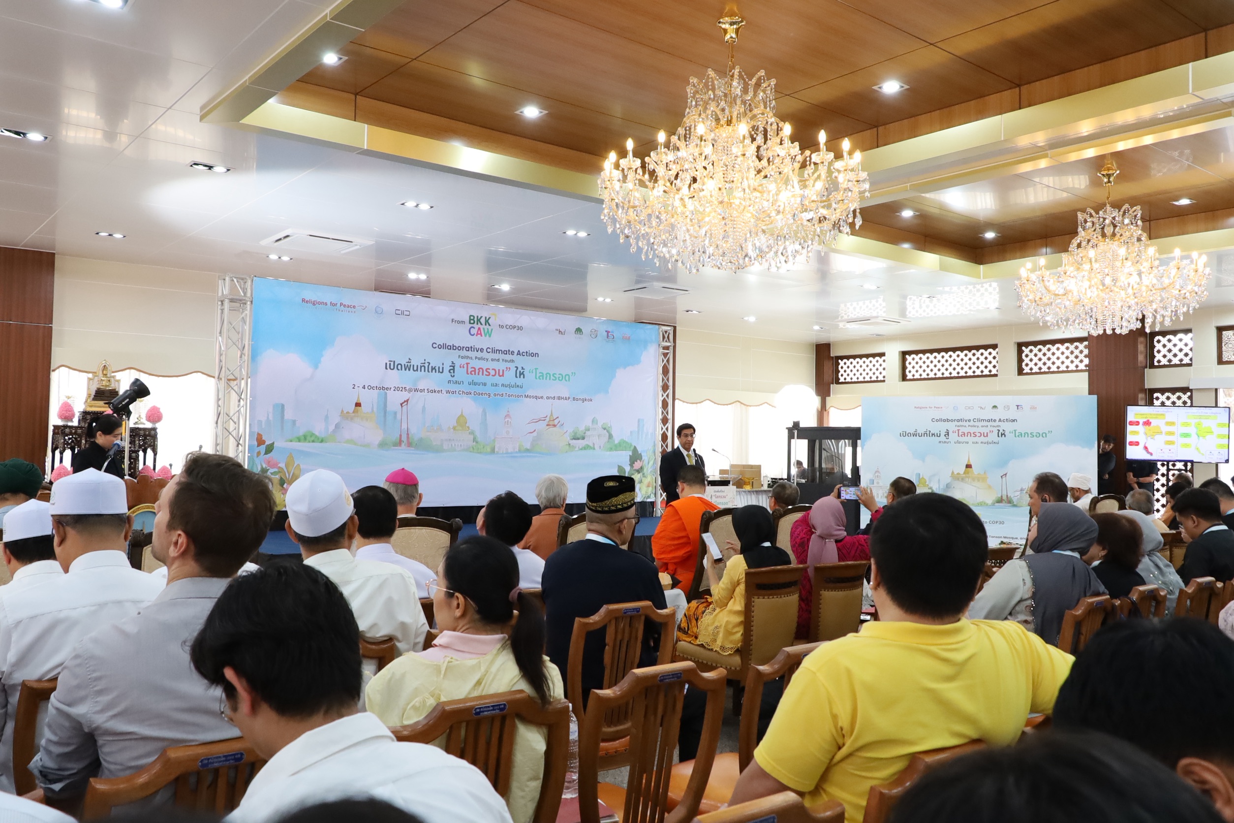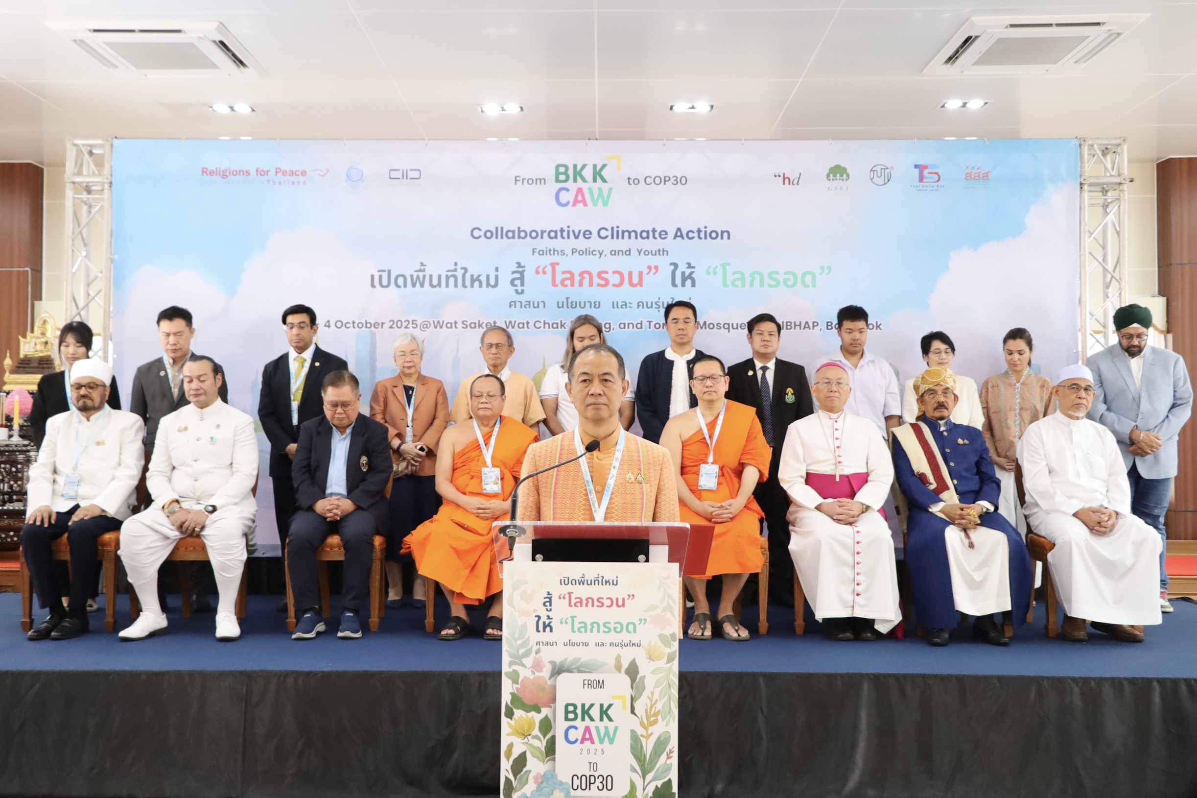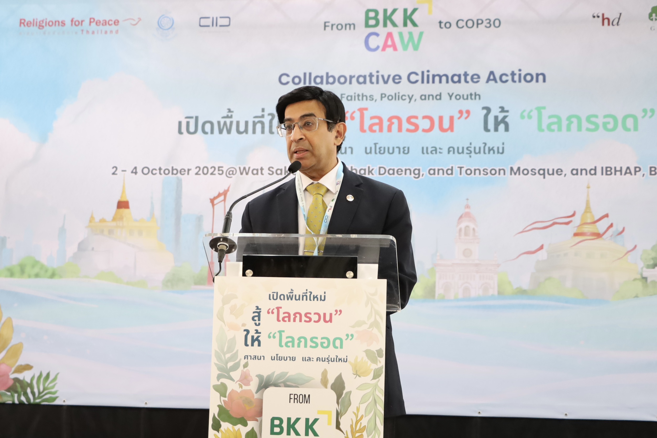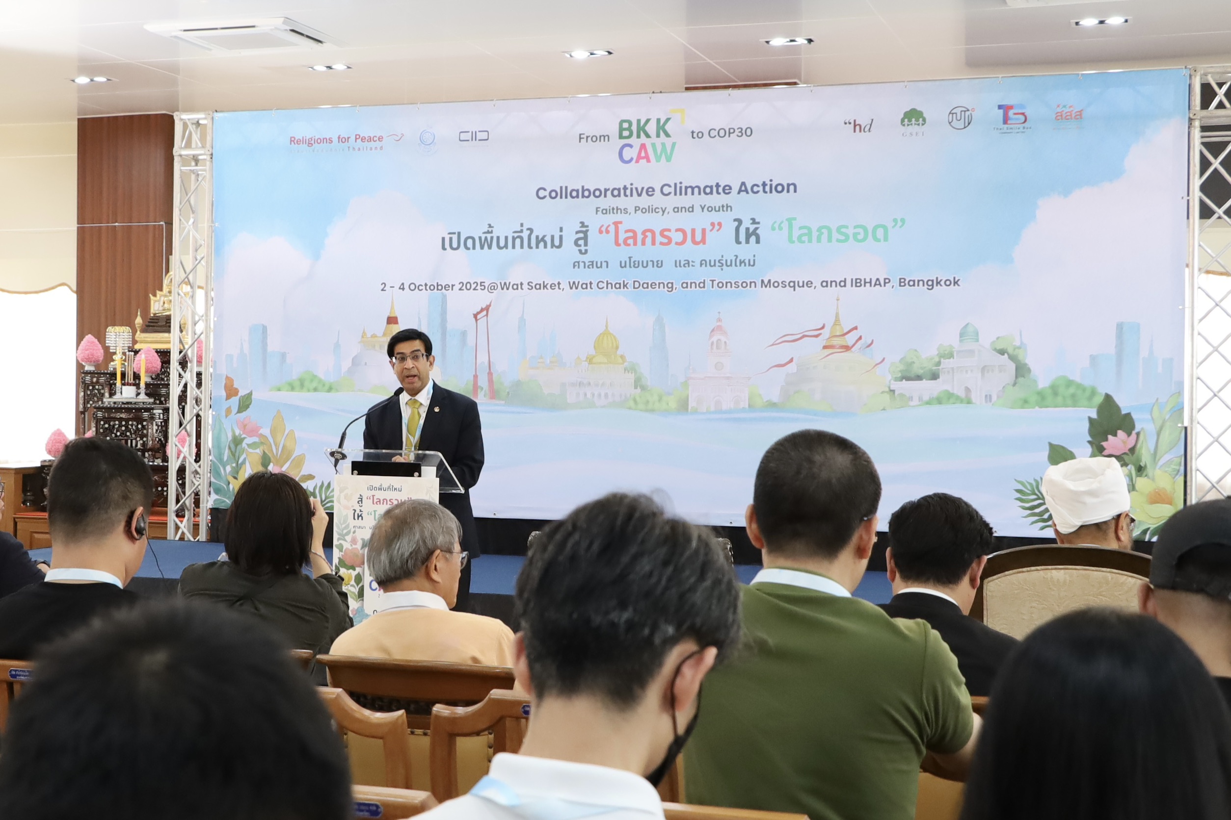 2 ตุลาคม 2568 รศ. นพ.สุริยเดว ทรีปาตี ผู้อำนวยการศูนย์คุณธรรม ได้รับเกียรติกล่าวปาฐกถาพิเศษ หัวข้อ “คุณธรรม นำสู้โลกรวน” พร้อมร่วมประกาศเจตนารมณ์ พลังศาสนา วัฒนธรรมนำสู้ “โลกรวน” ให้ “โลกรอด” ในงานเสวนาระหว่างศาสนาระดับภูมิภาค ภายใต้แนวคิด “เปิดพื้นที่ใหม่ สู้โลกรวน ให้โลกรอด: ศาสนา นโยบาย และคนรุ่นใหม่ จาก BKKCAW 25 สู่ COP30” ที่จัดขึ้นโดย มูลนิธิสถาบันการจัดการวิถีพุทธเพื่อสันติ (มูลนิธิ สกพ.) ร่วมกับ สถาบันธรรมรัฐเพื่อการพัฒนาสังคมและสิ่งแวดล้อม (Centre for Humanitarian Dialogue: HD Centre) และองค์กรเครือข่ายนานาชาติ ณ วัดสระเกศราชวรมหาวิหาร