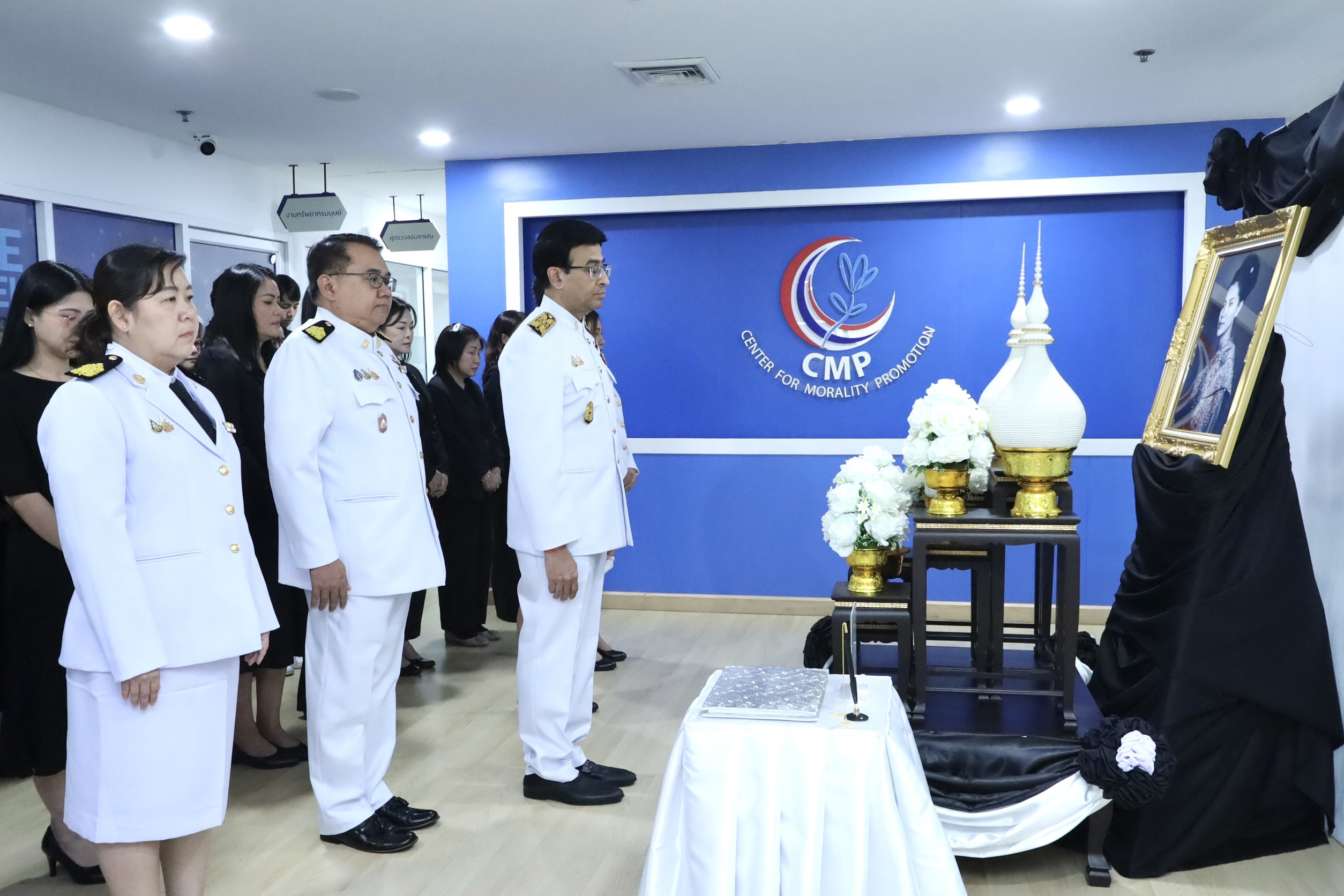 7 พฤศจิกายน 2568 ศูนย์คุณธรรม (องค์การมหาชน) นำโดย รศ. นพ.สุริยเดว ทรีปาตี ผู้อำนวยการศูนย์คุณธรรม พร้อมด้วยคณะผู้บริหาร และเจ้าหน้าที่ จัดพิธีถวายความอาลัย และลงนามถวายอาลัยเบื้องหน้าพระฉายาลักษณ์ สมเด็จพระนางเจ้าสิริกิติ์ พระบรมราชินีนาถ พระบรมราชชนนีพันปีหลวง ณ ชั้น 17 ศูนย์คุณธรรม (องค์การมหาชน)