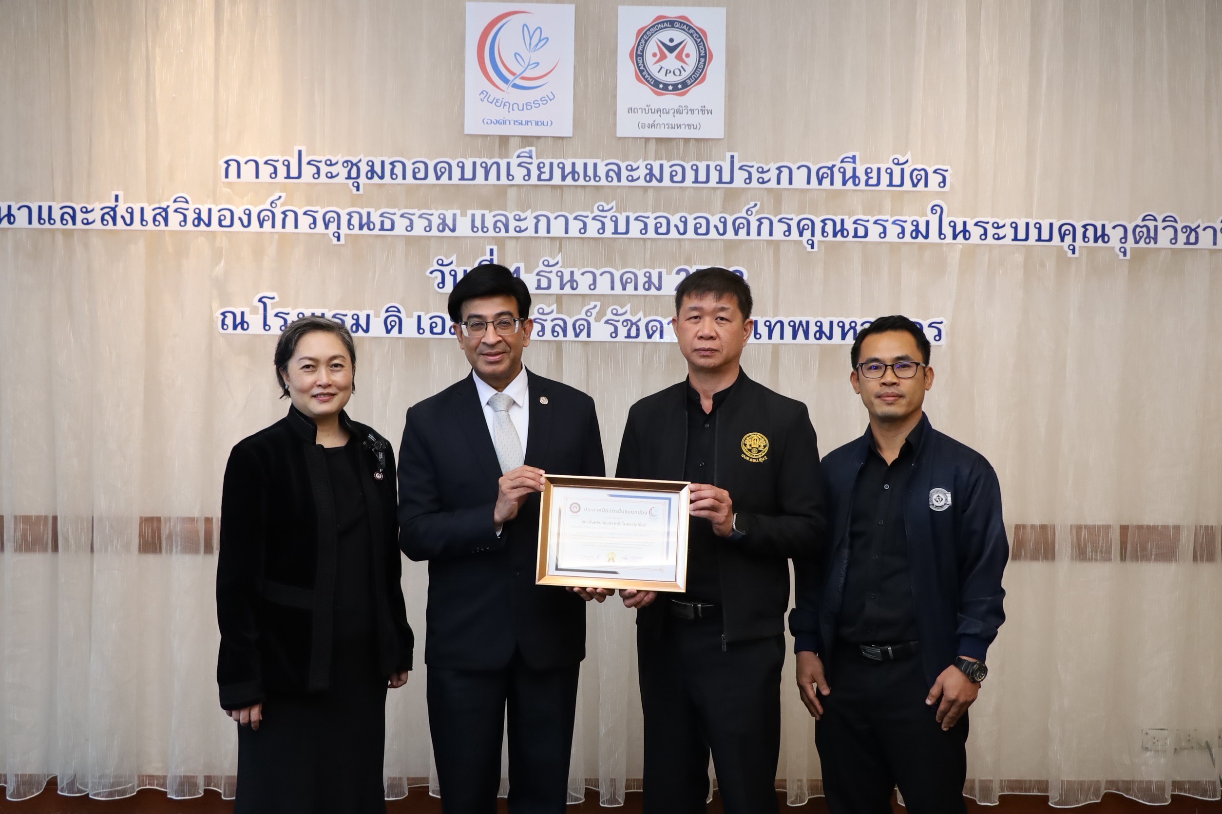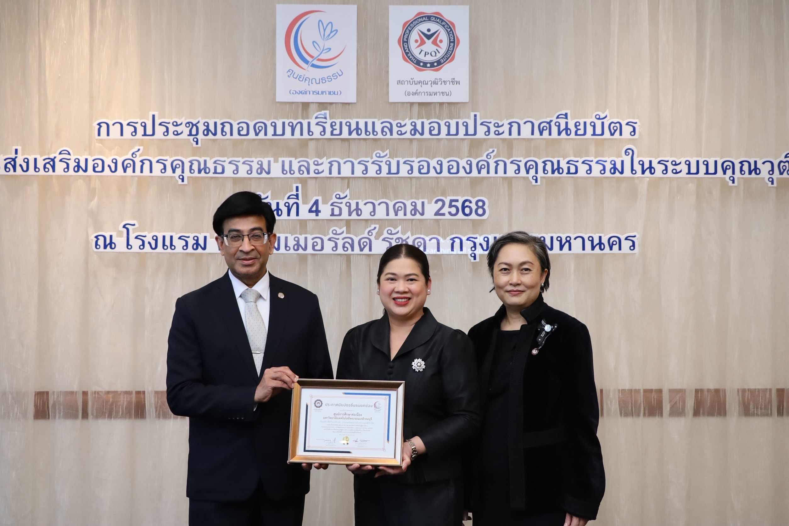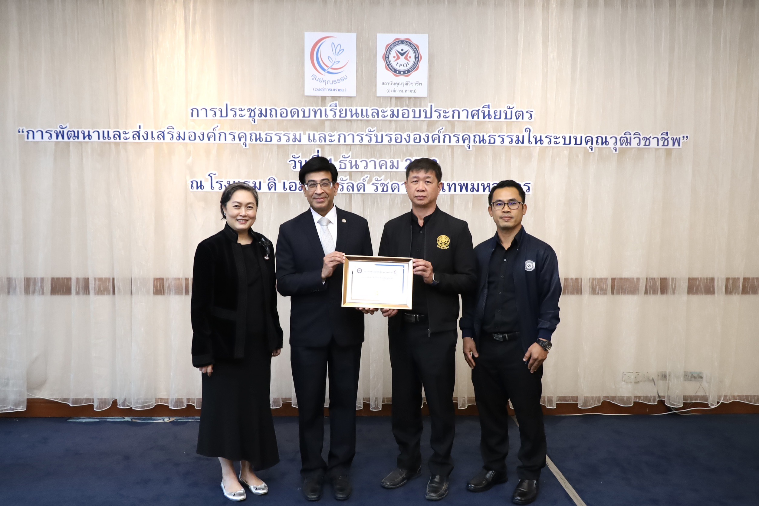 4 ธันวาคม 2568 ศูนย์คุณธรรม (องค์การมหาชน) โดย กลุ่มงานวิจัยนวัตกรรมและระบบพฤติกรรมไทย ได้จัดการประชุมถอดบทเรียนและมอบเกียรติบัตร โครงการ “ปรับปรุงรูปแบบการรับรองและดำเนินการเยี่ยมสำรวจเพื่อรับรององค์กรส่งเสริมคุณธรรม” โดยมีผู้เข้าร่วมจากองค์กรเครือข่าย หน่วยงานภาครัฐ และภาคส่วนที่เกี่ยวข้องกว่า 30 คน ณ ห้องพาโนรามา 1 ชั้น 14 โรงแรม ดิ เอมเมอรัลด์ กรุงเทพฯ
