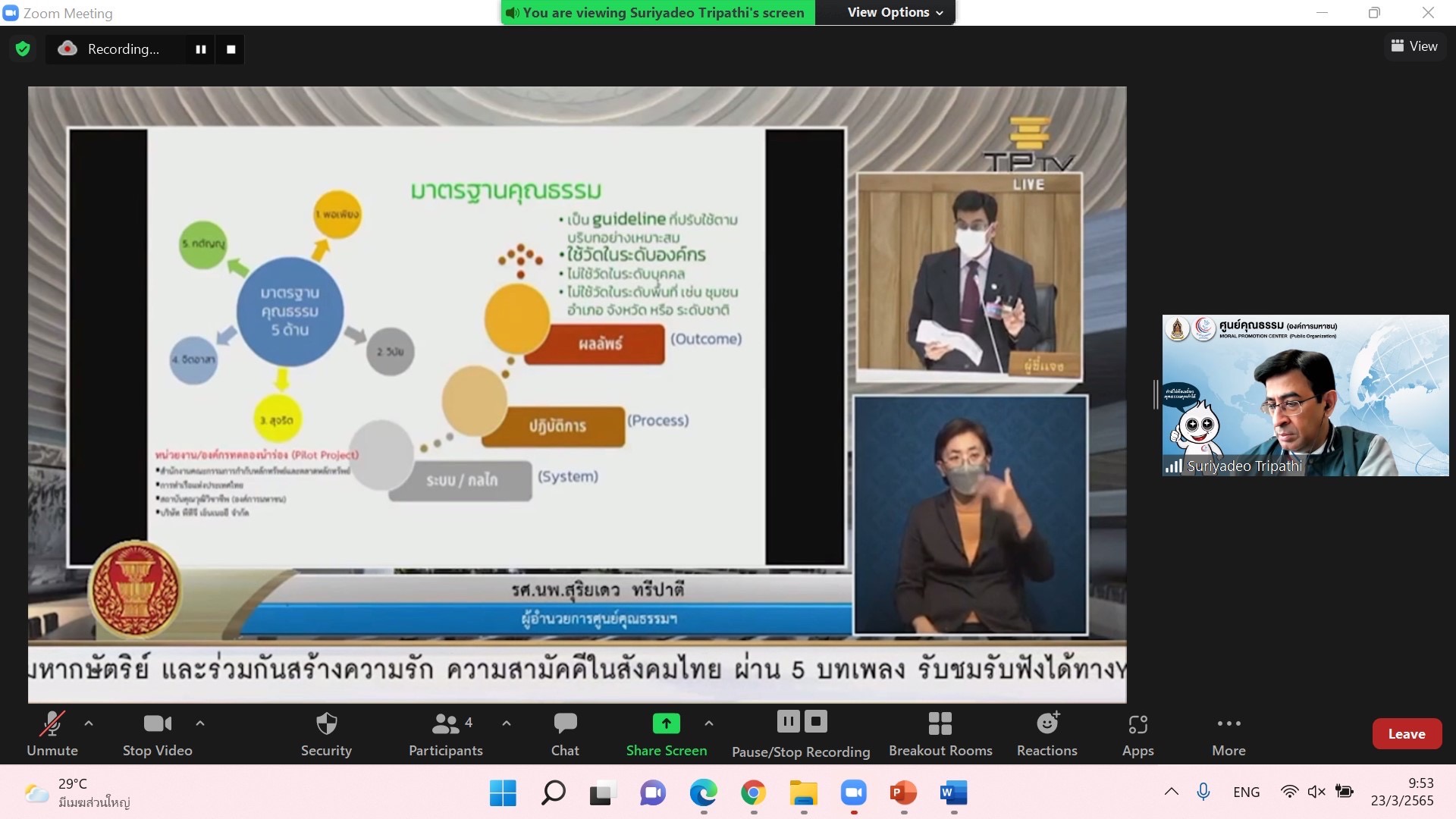 23 มีนาคม 2565 ศูนย์คุณธรรม (องค์การมหาชน) โดย รศ.นพ.สุริยเดว ทรีปาตี ผู้อำนวยการศูนย์คุณธรรม นายยงจิรายุ อุปเสน ผู้จัดการสำนักส่งเสริมและขับเคลื่อนเครือข่ายทางสังคม รับเชิญเป็นวิทยากร การอบรมเชิงปฏิบัติการ การส่งเสริมคุณธรรม จริยธรรมในการปฏิบัติงานตามมาตรฐานจริยธรรม