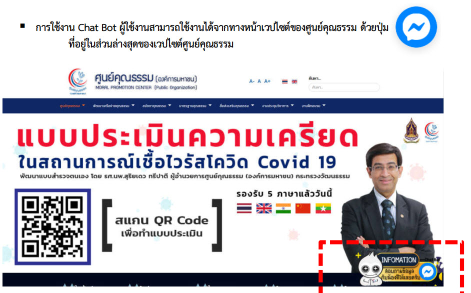 ท่านสามารถสอบถามผ่านช่องทาง ระบบการให้บริการถาม-ตอบ อัตโนมัติ ของศูนย์คุณธรรมได้ที่หน้าเว็บไซต์